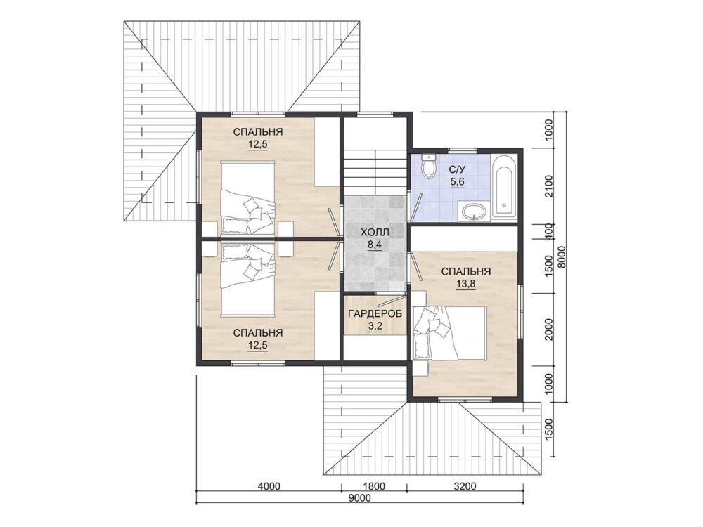 | Высота потолка мансарды | 2500 мм |